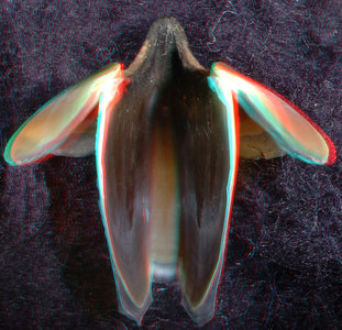About anaglyph 3D: Photographs here are in 3D, using anaglyph techniques which combines two photographs one in red and the other in cyan (blue + green) color. To get the 3D effect, you must use glasses with red and cyan lenses (filters) over your regular glasses. The form of the beak is far easier to interpret in 3D and we strongly recommend to the viewer that the glasses be obtained (this is especially helpful when viewing enlarged images - i.e. click on the image). These beak photographs were made using Red and Cyan Anachrome Aviator Glasses (see: http://www.anachrome.com/glassbuy.htm or http://www.amazon.com) which cost under $10.00 (USD).